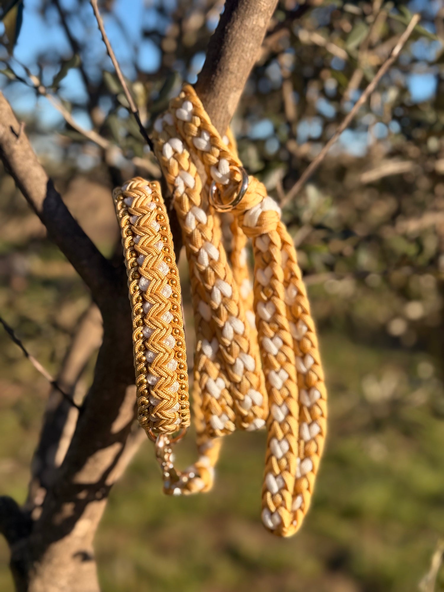 - Collier + Laisse assortis pour un ensemble chic et lumineux.