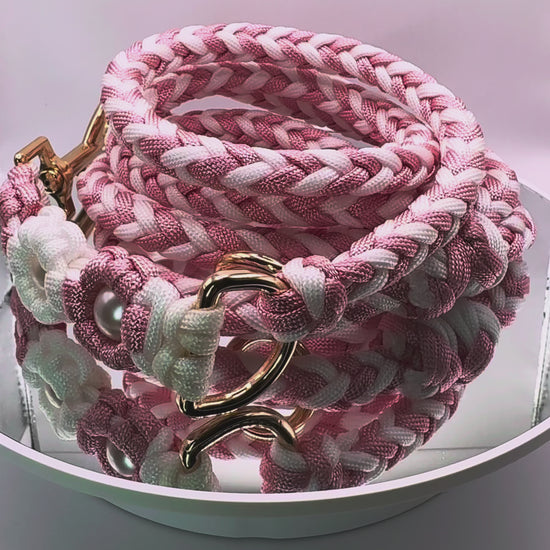 La laisse FLOREA rose et blanc allie douceur et solidité. Tressée à la main en paracorde, elle complète parfaitement le collier assorti tout en offrant confort et sécurité. Son mélange de couleurs délicates apporte une touche d’élégance à chaque promenade.