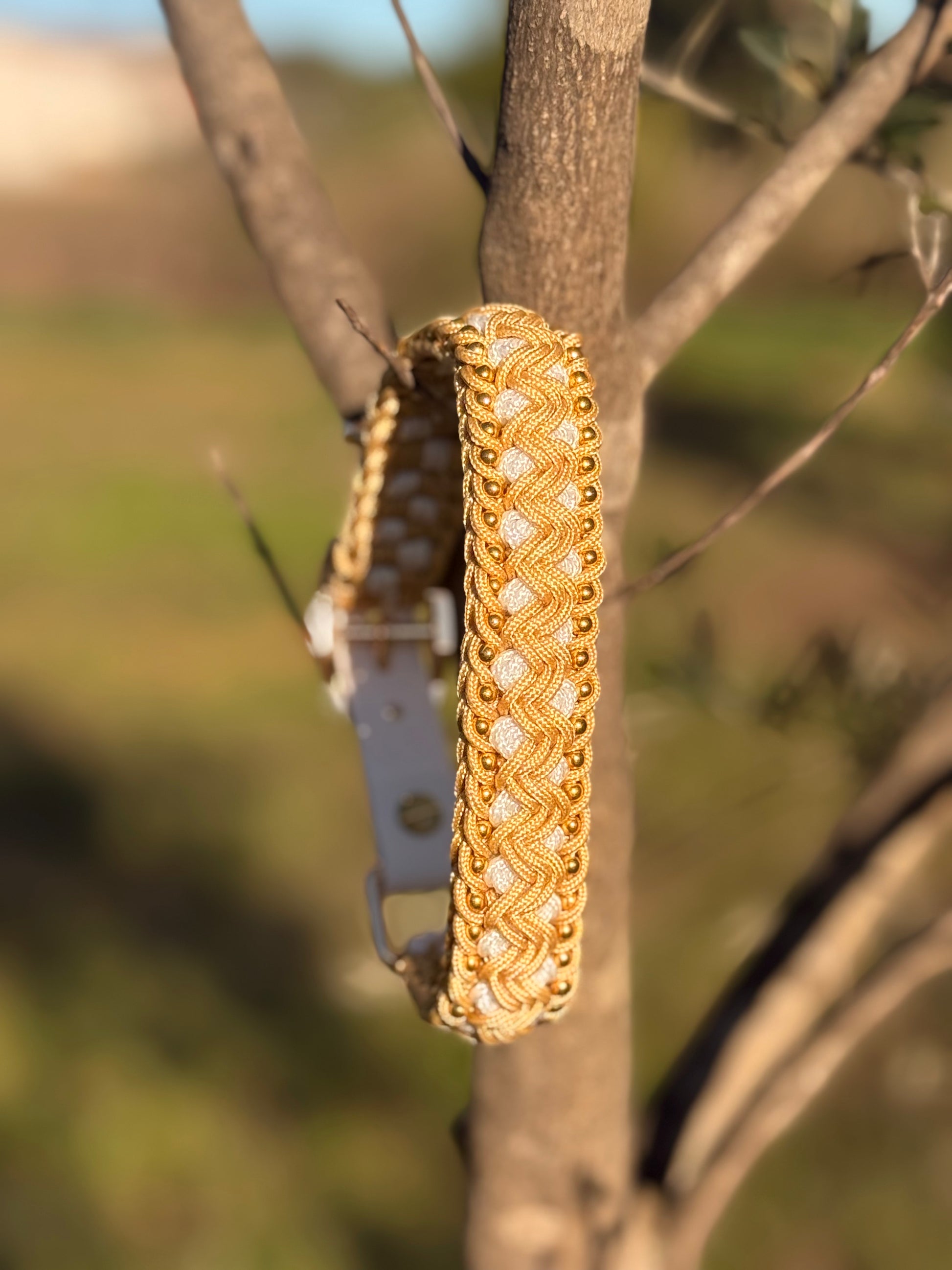 Le Glow Mini reprend toute l’élégance et la finesse d’un collier bijou, dans une version spécialement adaptée aux petits chiens. Tressé à la main en paracorde délicate, il se distingue par son design entièrement doré, sublimé par des perles couleur or qui lui apportent éclat et brillance. Fin, léger et raffiné, il offre confort et sécurité tout en illuminant votre compagnon avec un style chic et intemporel.