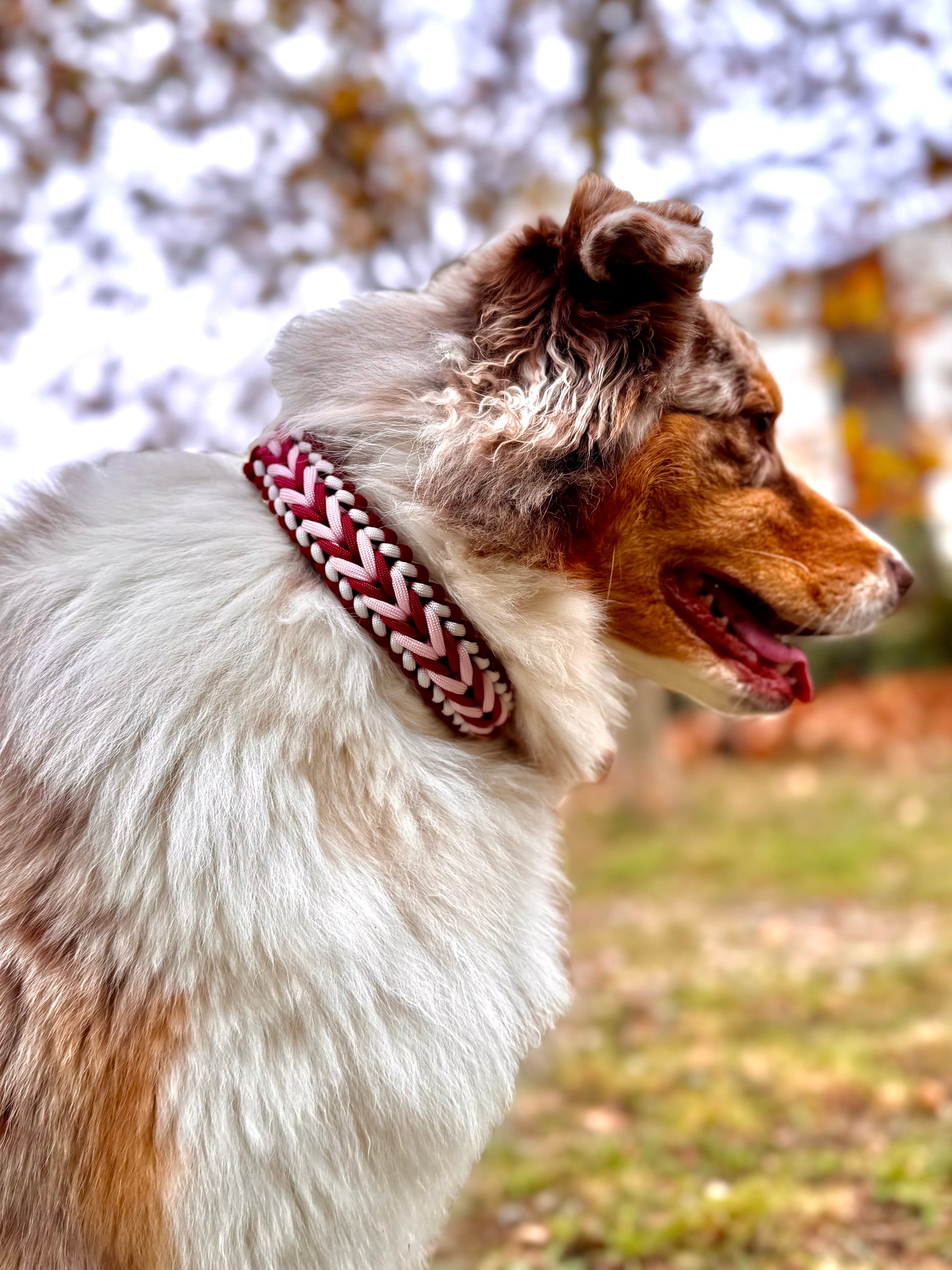 Chaque collier FloraTrack est une création unique, imaginée et tressée à la main pour refléter la personnalité de votre compagnon.